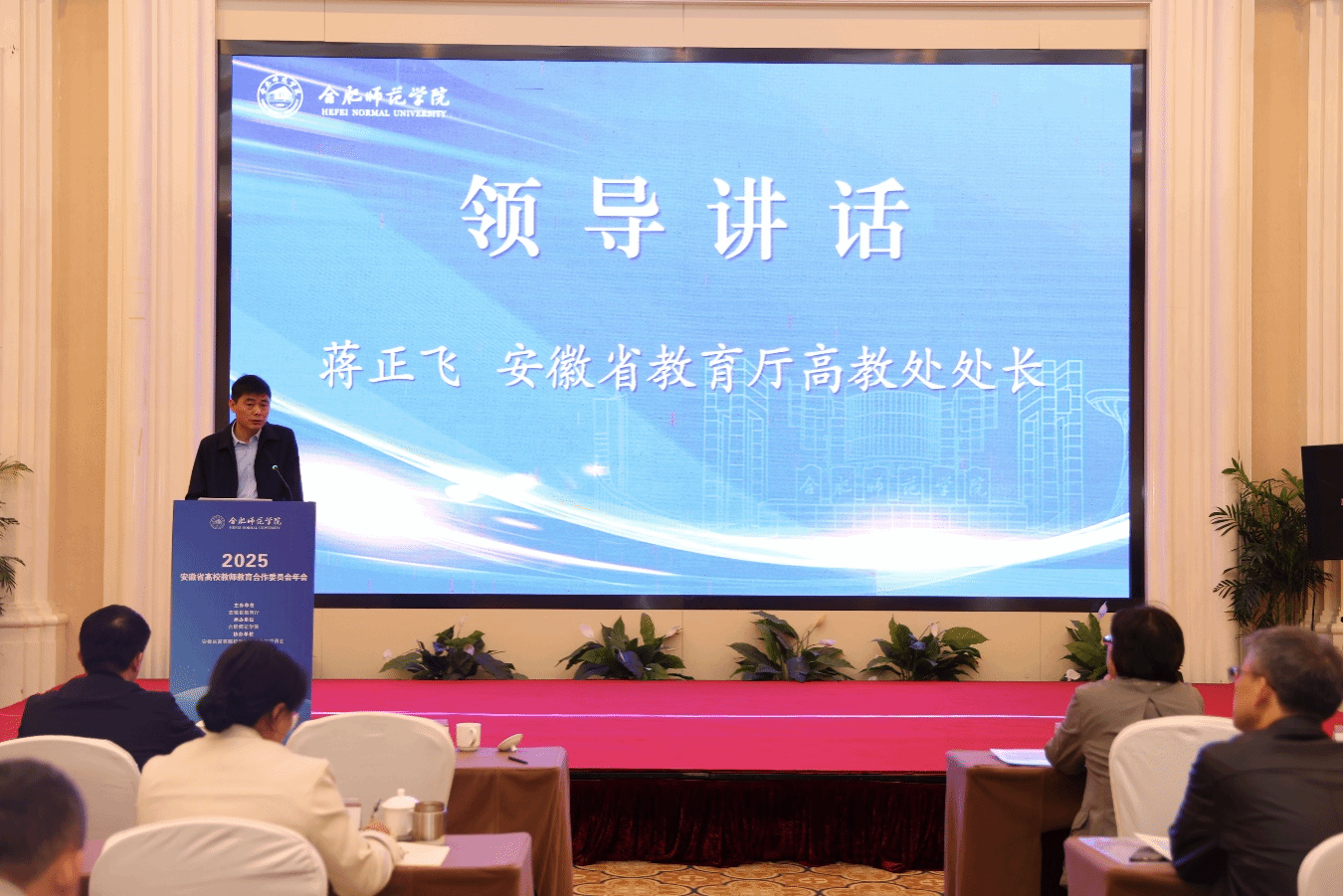 2025年11月2日,安徽省高等院校教师教育合作委员会年会(简称“高师联盟”)在我校滨湖校区召开。全省20所联盟高校领导、教学管理部门、相关专业负责人和教师代表70余人参加会议。安徽省教育厅高等教育处处长蒋正飞出席会议并做讲话。