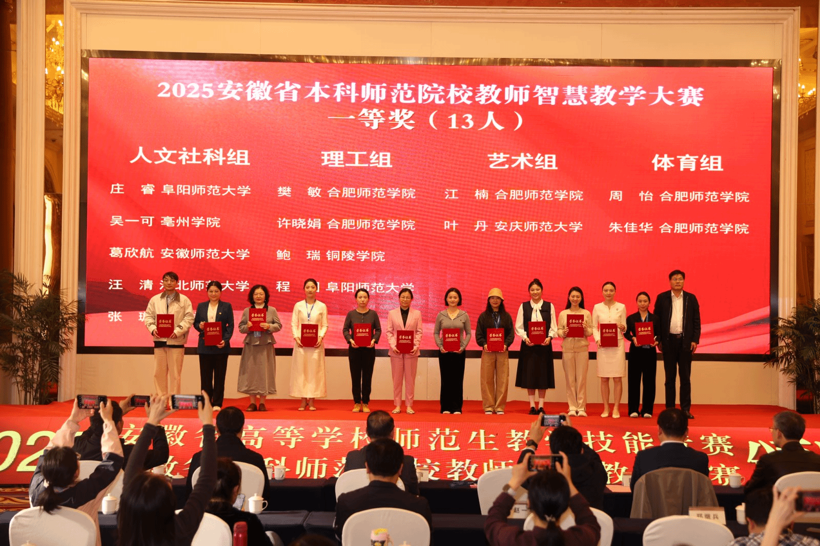 本次大赛以数字技术与人工智能技术的融合创新应用为核心牵引,旨在引导教师更新教育理念、改革教学模式、创新教学方法,全面提升线上线下混合式教学能力,助力人才培养质量升级。大赛设人文社科组、理工组、艺术组、体育组四个竞赛组别,吸引了安徽师范大学、合肥大学等17所“高师联盟”本科高校的136名教师参赛。经专家独立、公正评审,82名教师通过“线上教学资源”初评入围现场比赛;最终评选出一等奖13名、二等奖28名、三等奖41名。