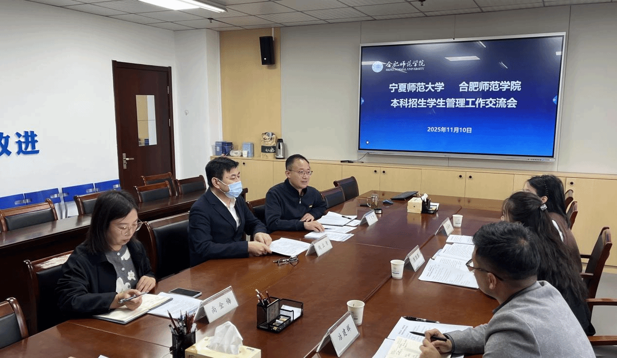 近日,宁夏师范大学学生处副处长陈亚男、招生办公室副主任王杨柳、学生工作办公室副主任冶建辉一行来我校,就本科招生学生管理工作进行交流。教务处处长钱立青、学生工作处副处长尚金梅、教务处副处长王道平等热情接待了陈亚男一行。