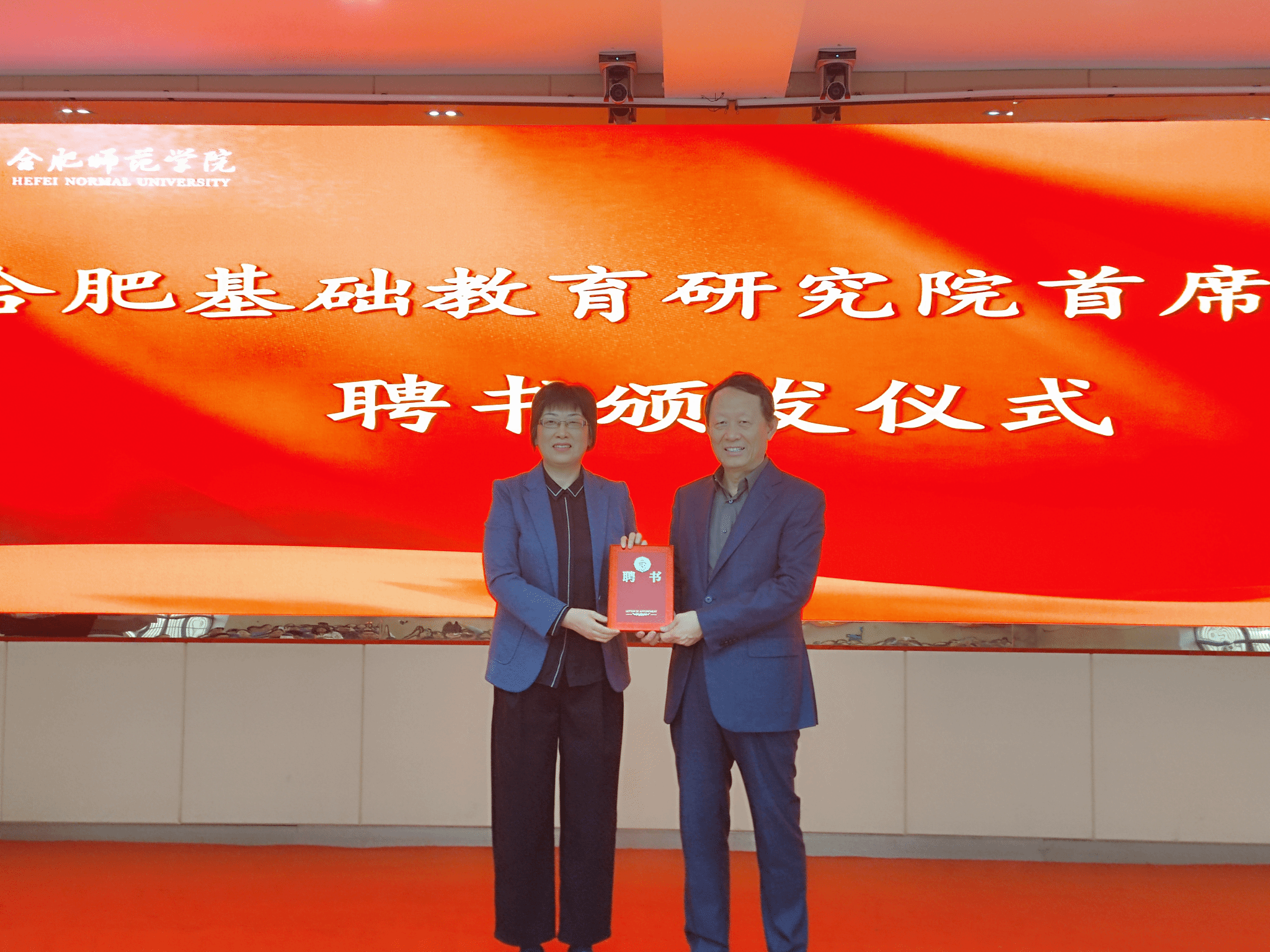 报告会开始前,方东玲为李希贵颁发合肥基础教育研究院首席专家聘书。方东玲感谢李希贵校长接受聘任,提出李希贵是全国教育领域知名的教育家,也是长期以来站在中国基础教育改革前沿的实践者和改革者,是千千万万基础教育领域校长们学习的榜样。她介绍了合肥基础教育研究院成立5年来的工作进展和承担了北京师范大学基础教育质量监测中心合肥中心工作情况。指出李校长的加盟,合肥基础教育研究将在市校合作中将能产生新的成果和业绩,也希望与会代表能积极参与到合肥基础教育研究和服务工作中来。