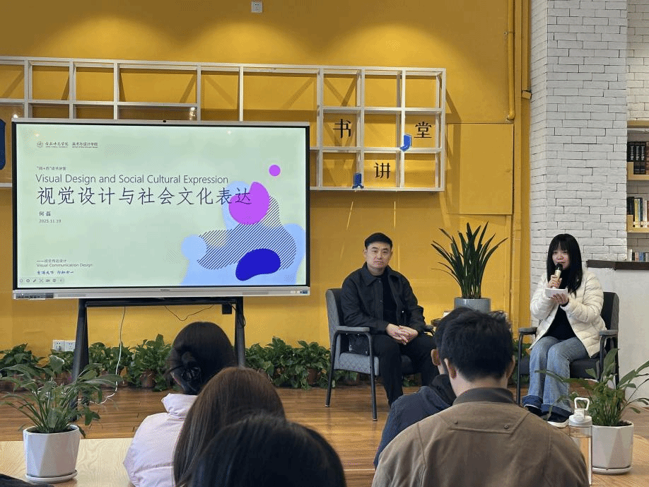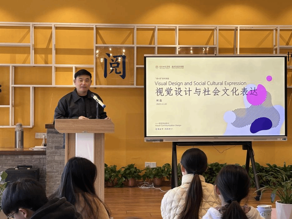 2025年11月19日,江淮文化名家、中国包装联合会设计委员会全国委员、我校美术与设计学院何磊教授做客“阅+历”读书讲堂,以“视觉设计与社会文化表达”为主题为在场师生带来了一场视觉盛宴。本次讲座由校阅读推广人教师周玉主持。