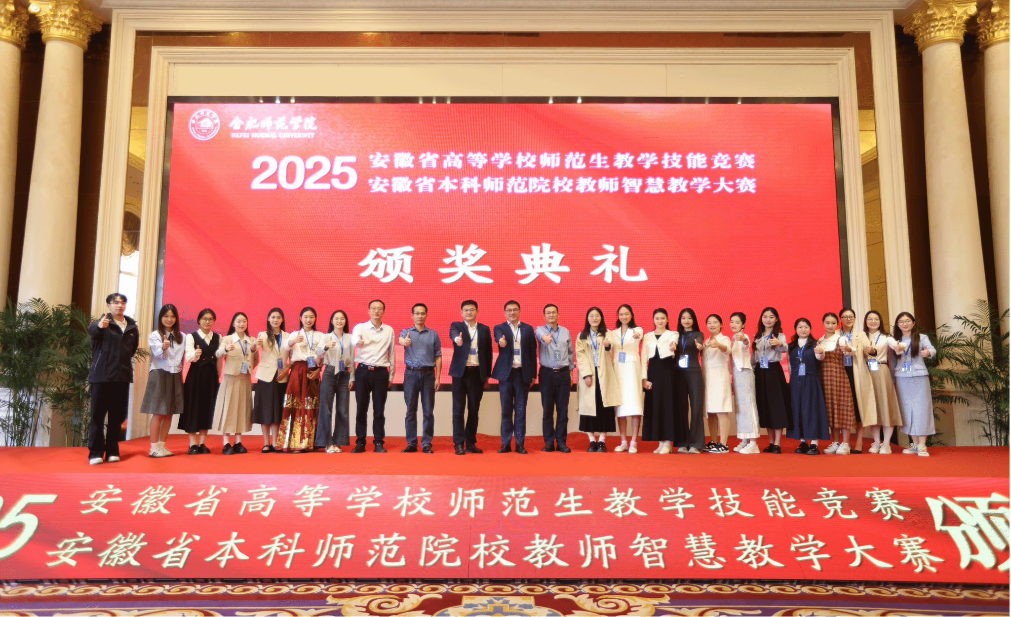 2025年安徽省高等学校师范生教学技能竞赛分为教学组和教具组两类竞赛。教具比赛采用线上比赛的赛制。教学组采用线上初选和线下决赛的赛制,初赛的50%的选手进入线下决赛。在教学组比赛中我院共有19位学生通过初赛顺利入围决赛,在决赛中选手们通过手写教学设计、课件制作、即席演讲、上课四个环节的激烈角逐最终获得了优异成绩。安徽省师范生教学技能竞赛是全省高校师范生教学技能的“大练兵”,也是师范专业学生展示个人风采和教学技能的“大舞台”,更是对师范生人才培养质量的“大检阅”。我院选手在赛场上锐意进取,沉着应战,赛出了水平和风格,充分展现了我院师范生扎实的专业知识、较强的教学技能和较高的综合素质。