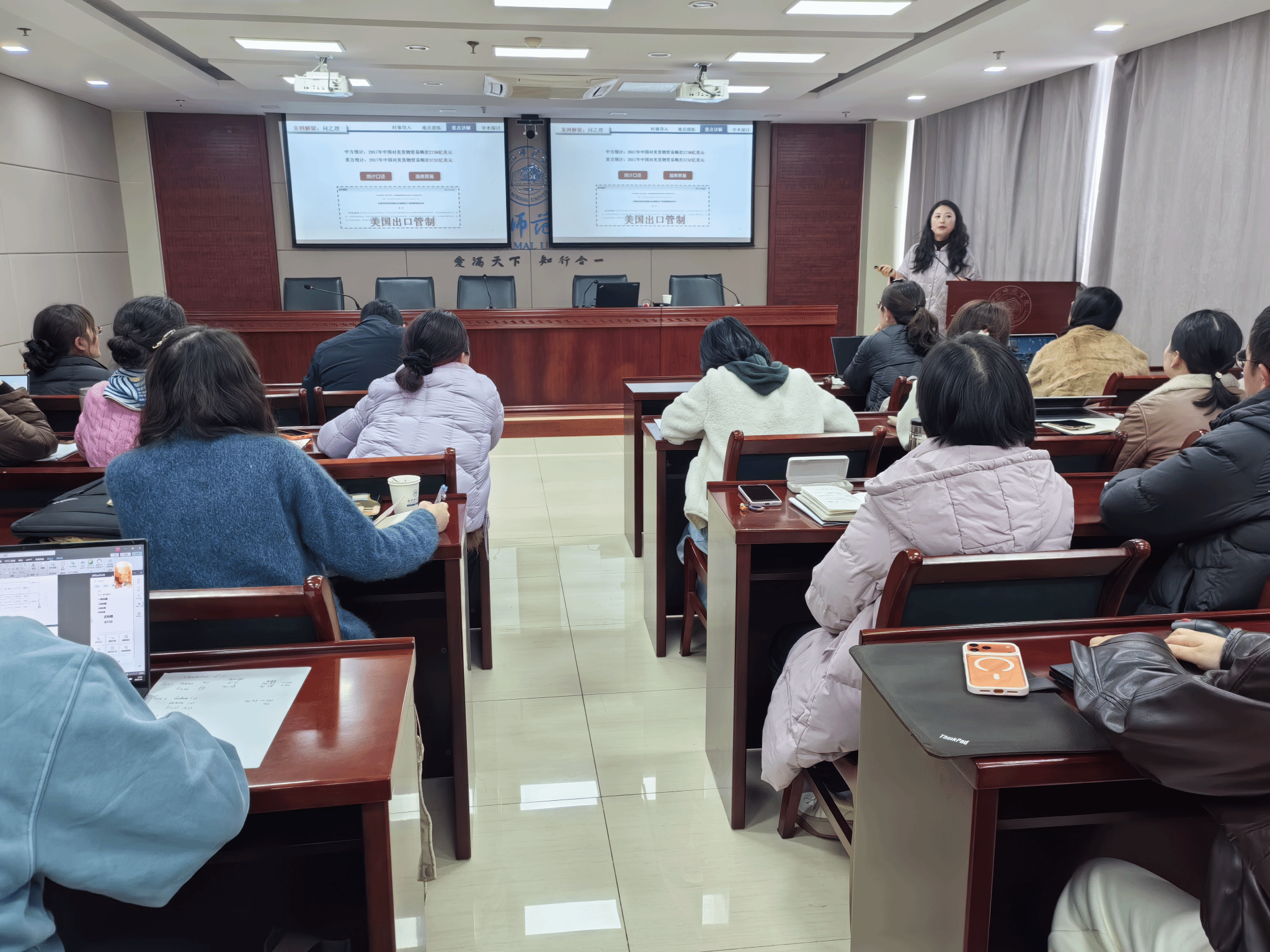 陈芳教授以国家一流本科课程《国际商务谈判与礼仪》为例,从“站稳讲台、讲好一门课、延伸一个活动、参加一项比赛、主动拥抱AI技术”五个方面,结合自身参赛经历,系统阐释了教学创新中的道、法、术、器、势五个维度。陈教授深入浅出地剖析教学创新的底层逻辑,重点围绕教学内容重构、教学过程与方法改革、教学评价创新以及混合式教学设计等方面展开讲解。