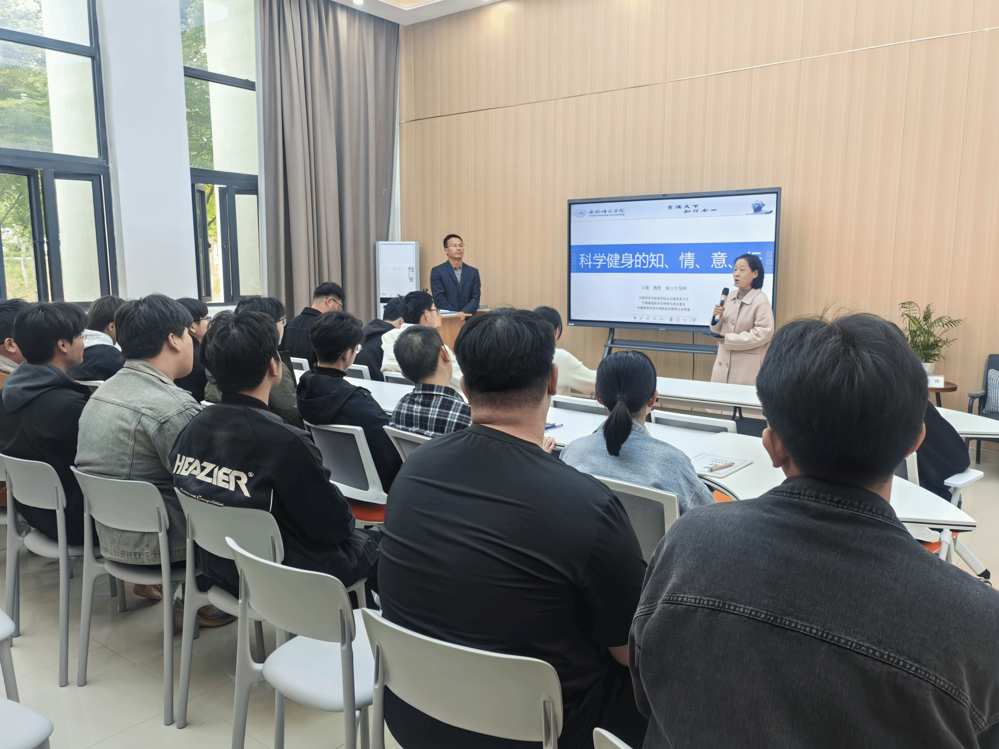 4月8日下午,为积极构建健康校园,推动“健康第一”理念走深走实,“阅+历”读书讲堂滨湖校区第三期讲座如期开讲。本次讲座以《科学健身的知、情、意、行》为主题,特邀体育科学学院教授、硕士生导师王强担任主讲嘉宾,马克思主义学院陶常梅老师担任主持,60余名选课学生到场聆听。