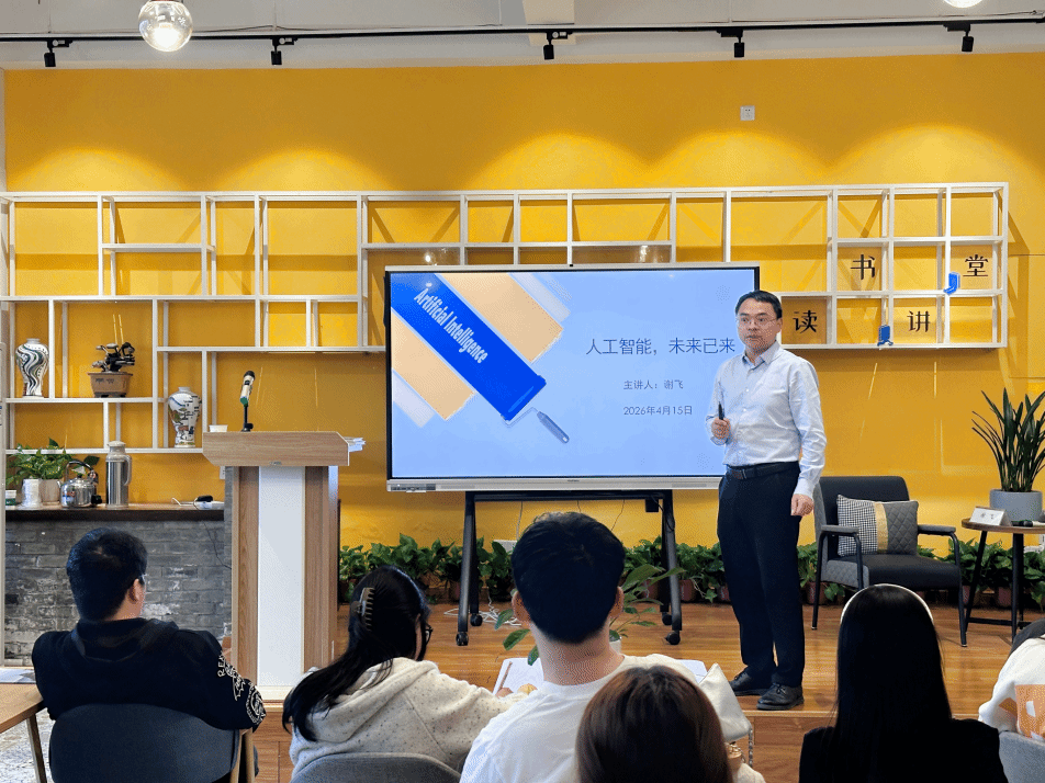 4月15日,锦绣校区“阅+历”读书讲堂举办以“人工智能,未来已来”为主题的专题讲座,讲座由计算机与人工智能学院院长谢飞教授主讲,校阅读推广人、电子信息与集成电路学院江淼老师主持。